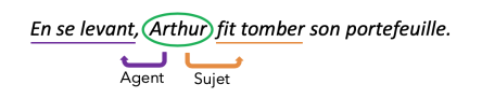 Dans la phrase En se levant, Arthur fit tomber son portefeuille, Arthur est l'agent du gérondif et le sujet de fit tomber.